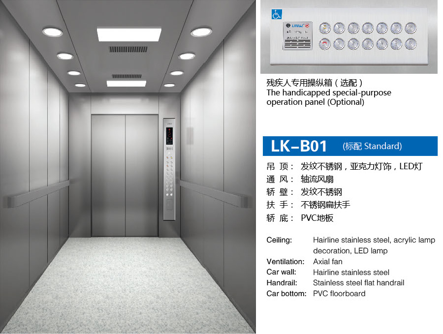 滿足緊急運送病人的需要,采用人性化設計,配置整套尖端設備運行平穩舒適。轎廂寬敞明亮,不僅具有普通載客功能,更可容納擔架,同時還為人們搬運較大家具提供了方便。